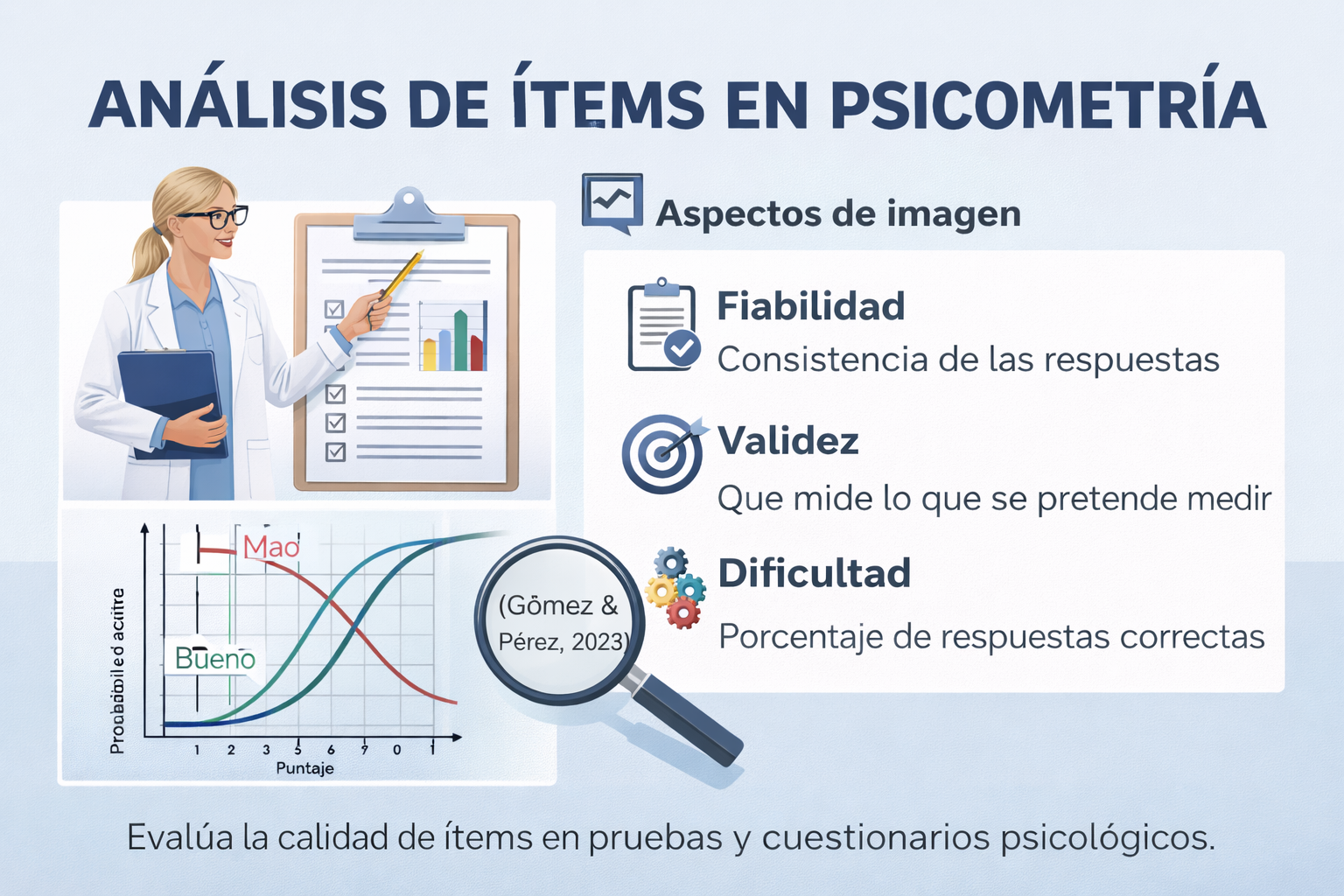 Análisis de Items, Validez de Contenido, Validez externa y de Constructo mediante Análisis Factorial Exploratorio o Confirmatorio.